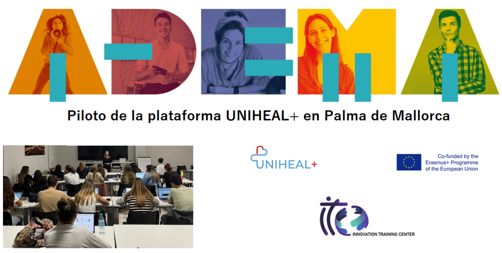 Hemos implementado con éxito teste de la plataforma del proyecto UNIHEAL+ Contextualizing UNIversal HEALth resilience through health professionals re-skilling for digital health services provision, (2021-1-ES01-KA220-VET-000033271) con 26 alumnos de la ESCUELA UNIVERSITARIA ADEMA con sede en Mallorca.