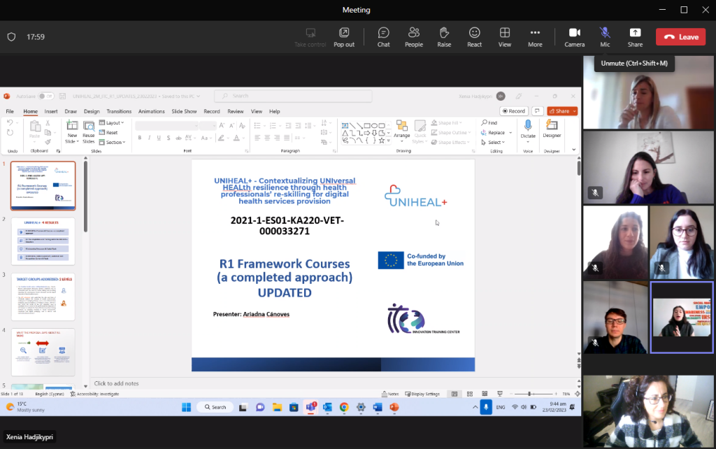 Nos hemos reunido hoy, 10 de enero de 2023, presencialmente en Nicosia (Chipre) con los socios del proyecto UNIHEAL+ Contextualizing UNIversal HEALth resilience through health professionals re-skilling for digital health services provision, (2021-1-ES01-KA220-VET-000033271).