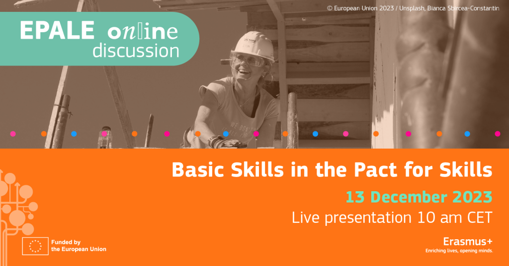 El miércoles 13 de diciembre de 2023, de 10.00 a las 15.00 horas CET, EPALE acogerá un debate en línea sobre capacidades básicas en el marco del Pacto por las Capacidades.