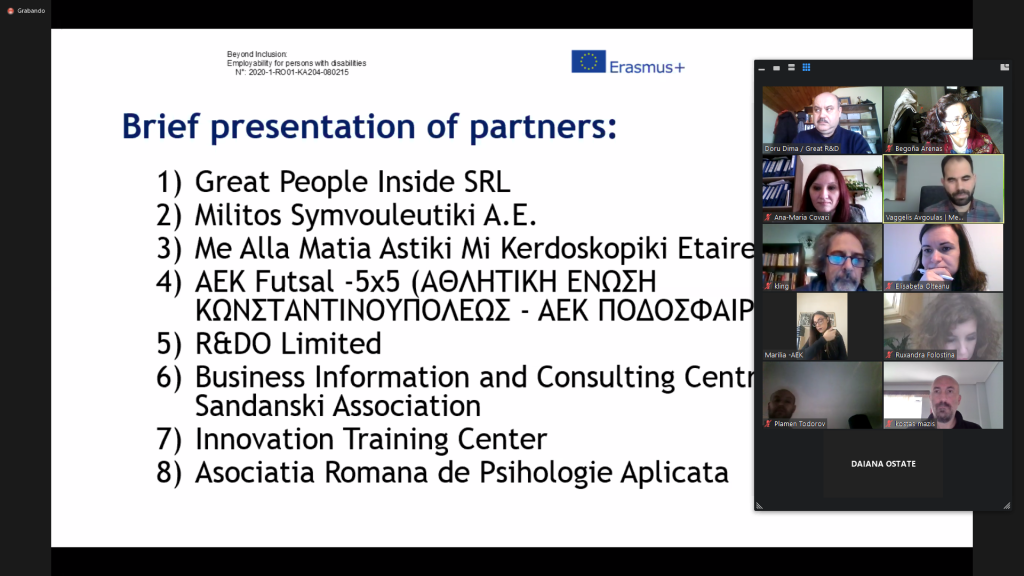 Hoy nos hemos reunido con los socios del proyecto «Beyond Inclusion»: Employability for persons with disabilities (2020-1-RO01-KA204-080215), promovido por la empresa rumana de RRHH GREAT PEOPLE INSIDE.