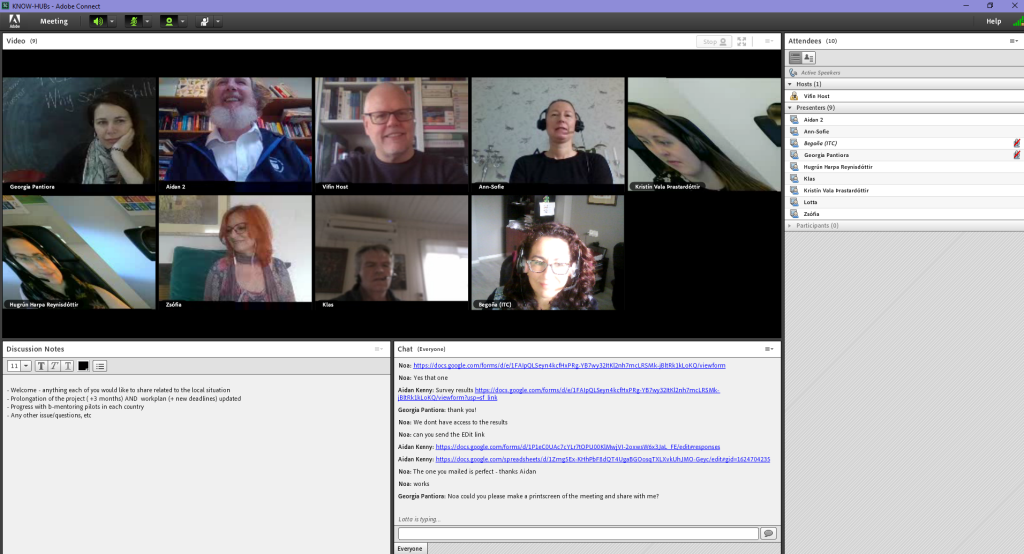 Hoy nos hemos reunido, usando ADOBE Connect, con todos los socios de Know hubs y nos hemos puesto al día del proyecto TRAS LA EXTENSIÓN DE 3 MESES Y ACORDAR: