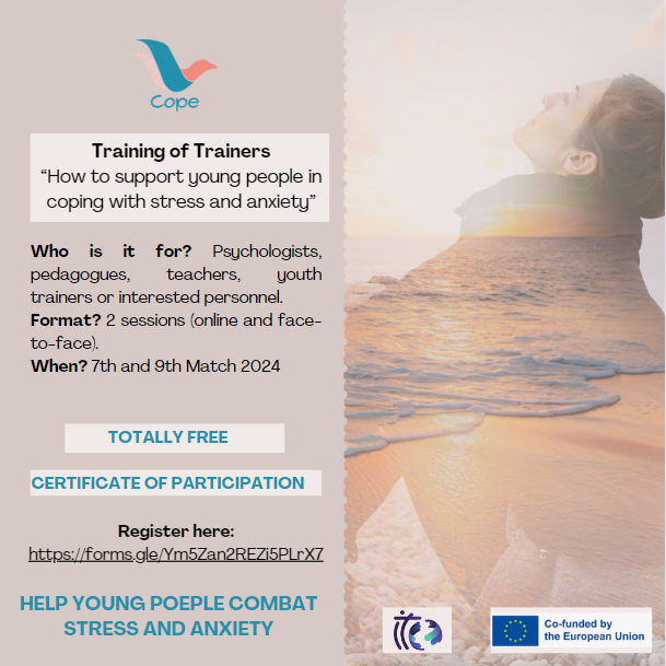 From ITC we give you the opportunity to participate in the training of trainers that will be held soon: do you want to be updated on the different techniques to deal with stress and anxiety? are you interested in helping young people to improve their mental health and well-being: if the answer is yes, don’t hesitate and SIGN UP FOR THE TRAINING SESSIONS HERE.