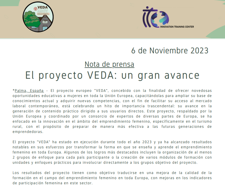VEDA fue concebido con la finalidad de ofrecer oportunidades formativas novedosas a mujeres en toda la Unión Europea, capacitándolas para ampliar su base de conocimientos actual y adquirir nuevas competencias, con el fin de facilitar su acceso al mercado laboral contemporáneo. Ahora estamos avanzando en la generación de contenido práctico dirigido a sus usuarias directas: las mujeres en el medio rural. Este proyecto, respaldado por la Unión Europea y coordinado por un consorcio de expertos de diversas partes de Europa, se ha enfocado en la innovación en el ámbito del emprendimiento femenino, específicamente en el turismo rural, más concretamente en el #agroturismo, con el propósito de preparar de manera más efectiva a las futuras generaciones de emprendedoras.