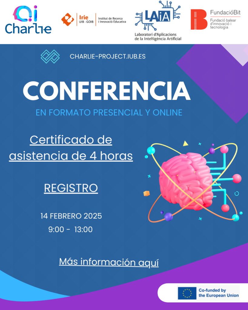 Además, se presentarán los recursos y resultados del proyecto CHARLIE, una iniciativa clave para abordar la ética en la IA y fomentar una mayor comprensión de su impacto.